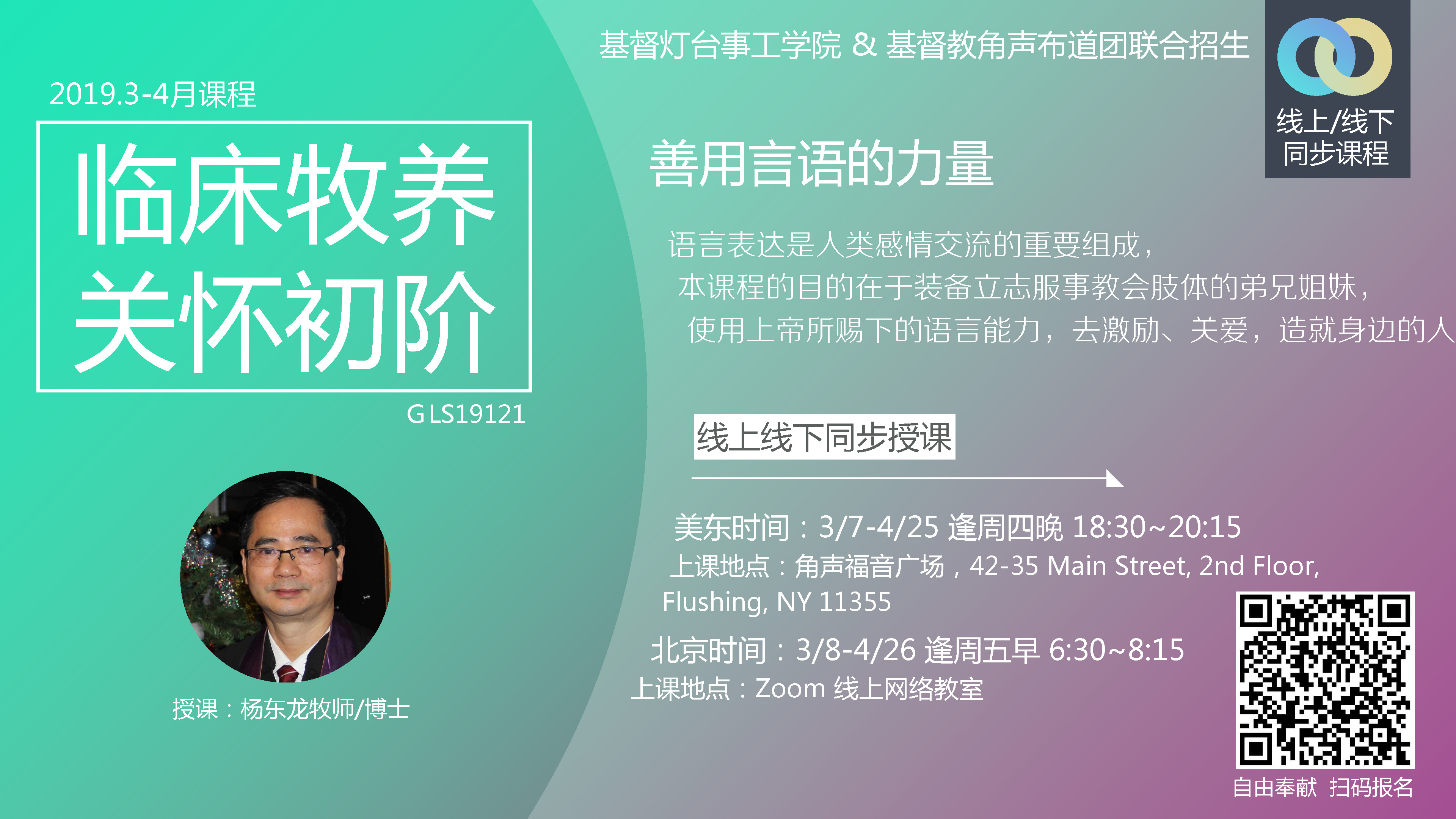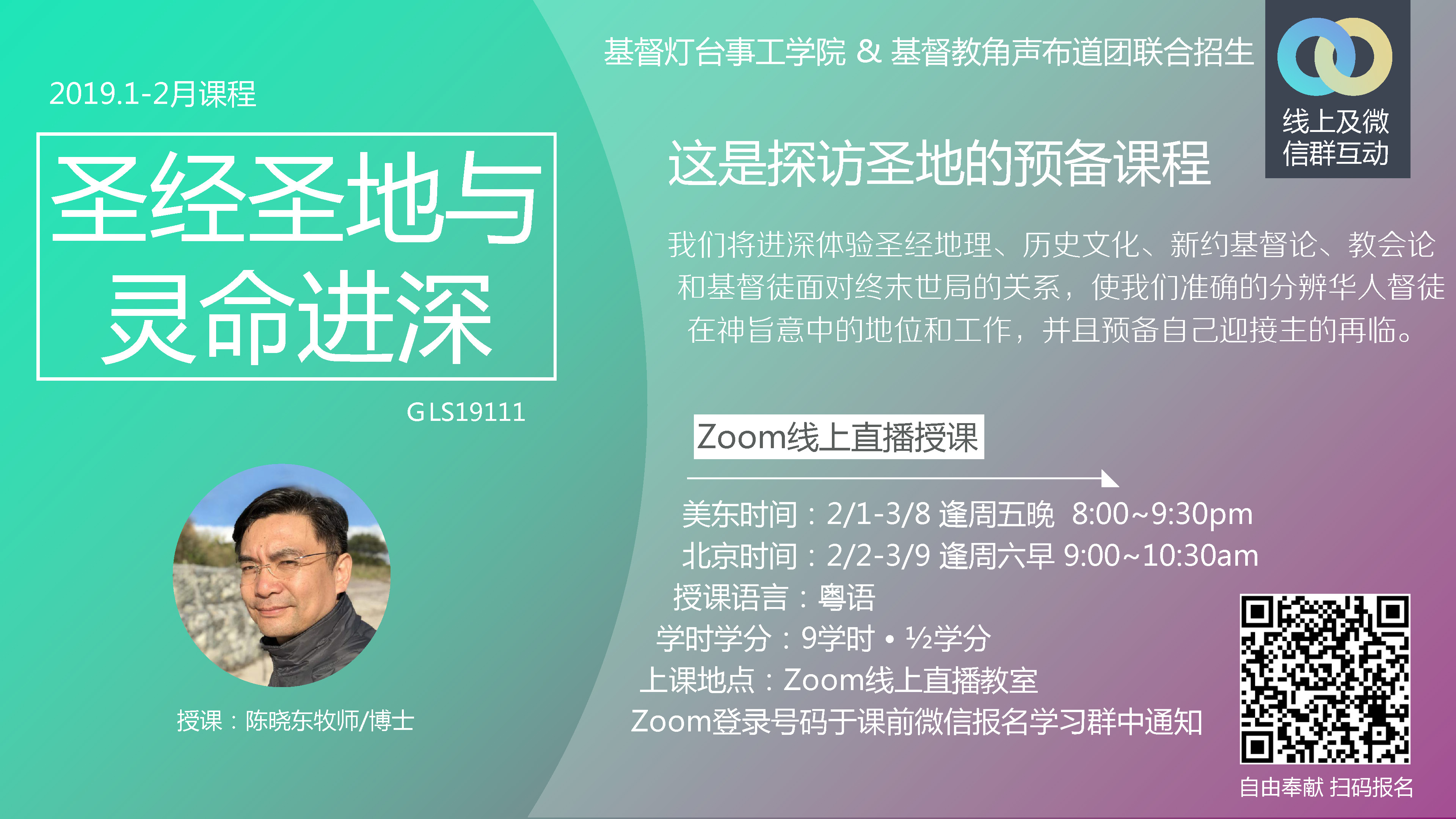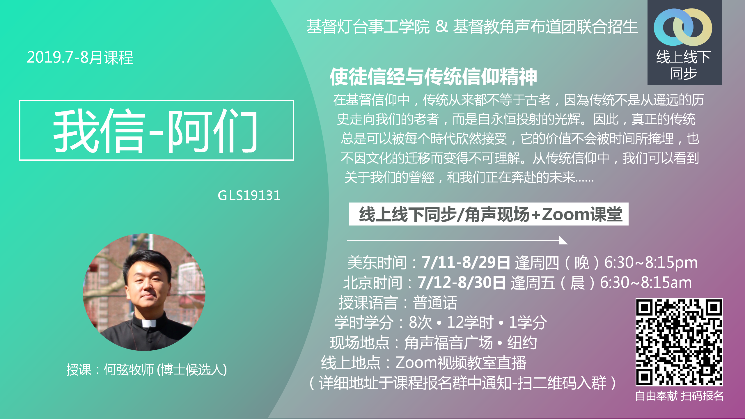 ⽂憑課程簡介: 我們的故事:勞伯祥牧師、陳曉東牧師和陳熾牧師⼀年前相約⾯談和祈禱,主就感動我們把握時機,同⼼協⼒,匯聚實踐神學教育界的專家學者,和城市中宣教的善牧良師,紥根紐約,⾯向普世,依托⾓聲福⾳廣場II為經,使⽤先進遠程教育技術為緯,為福⾳轉化城市、社區、職場和家庭,發展⼀所城市宣教⼠學院. 今天,我們邀請你報名成為課程學員,和我們⼀ 起書寫廿⼀世紀的使徒⾏傳。 過去⼀年,我們的週三線上視頻教室、週四⾓聲宣教⼠教室和週末密集班的學習⼈次達四百⼈以上。耶穌基督的聖靈在此世代要以真理澆灌上帝的⼦民 (珥2:28),我們⿎勵有志成為城市宣教者、崇拜與靈命更新領袖、教會⾧執、創啓事⼯的開拓者和創業者參加我們的課程,挖掘你的屬靈恩賜,回應⼤使命,服事神也服事⼈。 Facebook: https://www.facebook.com/events/741183109579682/ Sign up link: https://drive.google.com/open?id=1mbeV4rQZlY8bZ3iW1yF1HXKbAHfmwP1ze5QZqpzqGA4